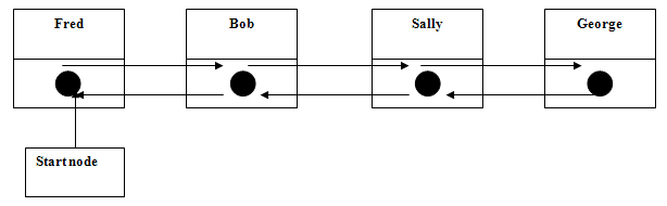 A linked list is a more general data structure. In fact we have already seen two instances of a linked list without even realising. Both the queue and the stack have been implemented using linked lists. Or more importantly are variations of a linked list. There are two types of linked list; single link and double link. We have already seen one example of each. For the exam you are expected to know how a linked list works and also how it can be turned into a stack and a queue. A linked list is simply a collection of nodes linked together. A doubly linked list will simply have arrows going in both directions. The above diagram also shows a start node. When you are asked to draw a linked list you should always add a start node. It will also say if they want a singly linked or a doubly linked list. |