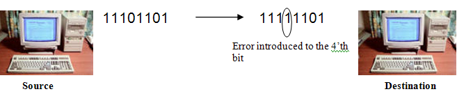 Before hand the computers decided to use even parity. That means that every message sent will always have a even number of 1’s. The message is sent across the network, however a error gets introduced at the 4’th bit.
