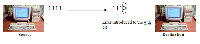 A single parity bit will not be able to spot all errors. Things will be fine as long as there are always a odd number of bits with errors in the packet. If there is an even number then the error will not be detected. This example has only one bit in error. As we have an odd number of ones the destination can easily work out that there was an error. Because only an odd number of bits changed we can spot the error. Here two bits are in error. The destination will not be able to work out that an error has occurred due to the fact that it sees an odd number of ones. As such this packet would have been accepted. As there is an even number of error bits the destination could not pick up the error. |