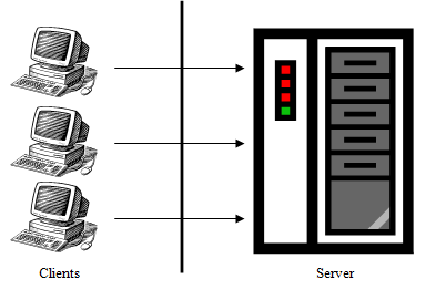 Clients are the computers who access the servers in order to use a service. For example each computer on the school network accesses files from a file server. Below is a diagram showing client server architecture.