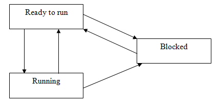 Processes can be in different states and are not always ready to run. For example if a process is waiting for some I/O request to be fulfilled, there is no point it being run as there is nothing it can do. We say that this process is blocked. As a process is running, it may become blocked for some reason. Maybe the user has asked for a file or work is being saved. In this case the process should become blocked and then relinquish control to another process. The state diagram shows this.