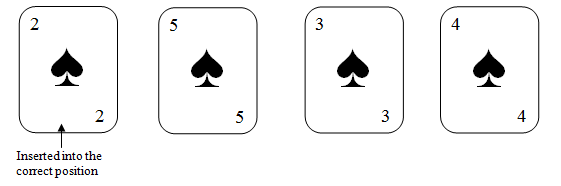 Sorting is a common problem in computer science and one which has many solutions. Over the course of three or four lessons we shall look at a number of different approaches to the problem of sorting. The first algorithm we will look at is known as insertion sort. This algorithm had its inspiration on how humans sort a hand of cards in their hand. Let's consider the human version before we look at the computer science version.