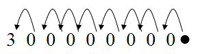Looking at this number we can see that it has 8 zeros. Imagine there is a decimal point at the end of the 3,000,000,00. We can then move, or float, the point over to the left until we get 3. 00000000