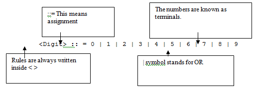 | Defining a rule in BNF | |