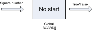 The square number will be the square we are testing. The true/false will be wether or not there is a ladder/snake on that square. Notice that I do not care how that square was decided because at this stage it is not important. All i am concerned about is how to do the No Start module.